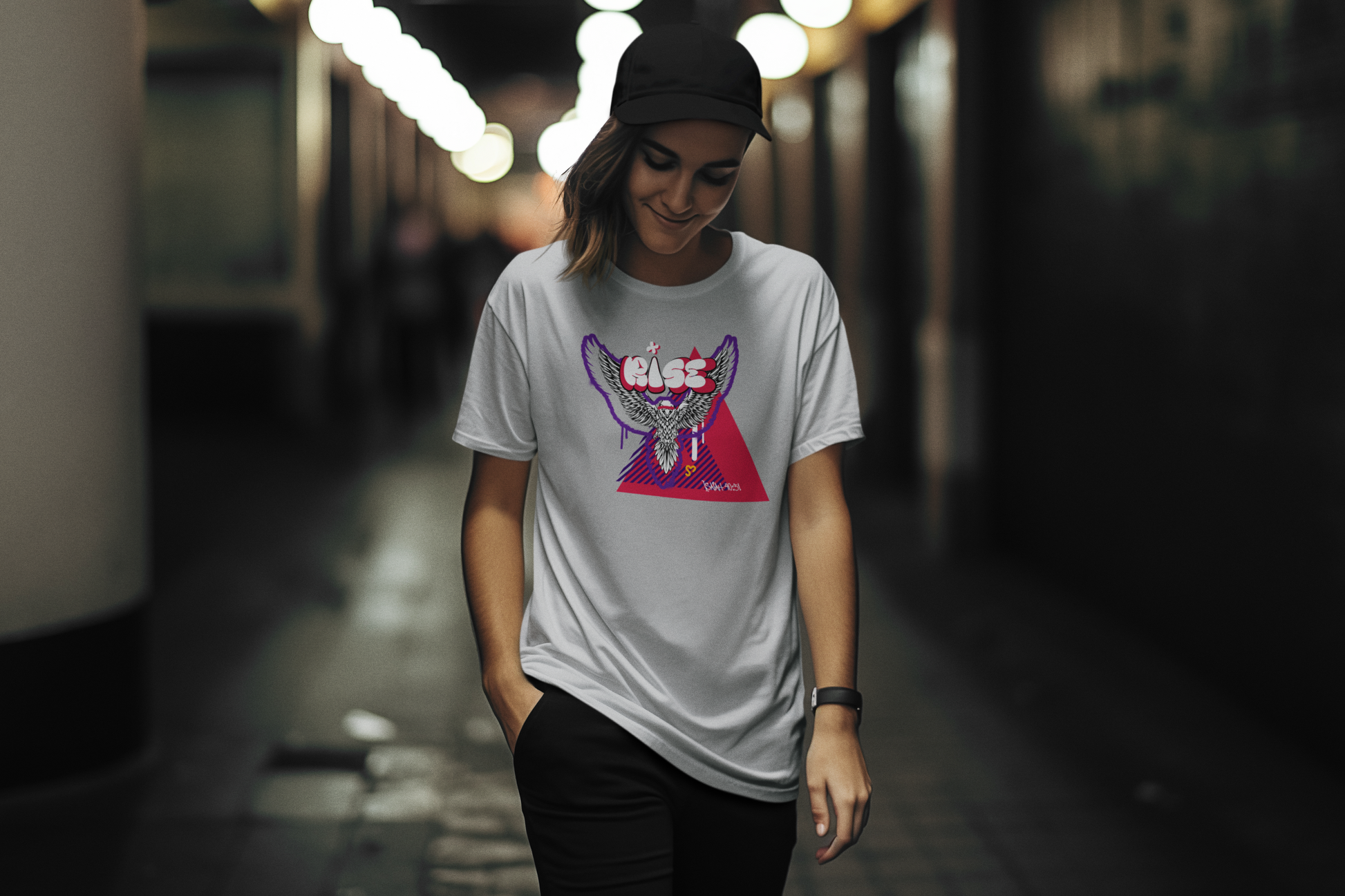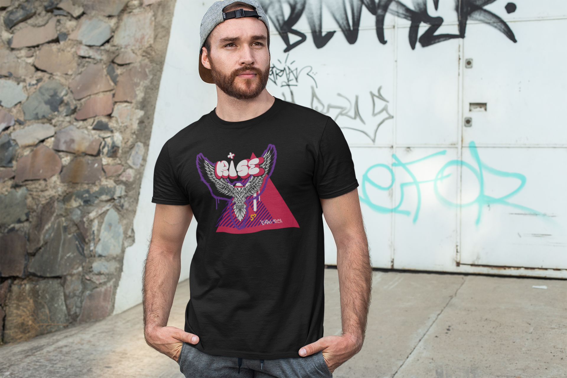 The RISE Tee is a declaration of power and perseverance. Featuring a majestic eagle mid-flight, it’s inspired by Isaiah 40:31 — a call to those who wait on the Lord to rise up with wings like eagles. With bold red and purple street-art elements and a graffiti-style “RISE” wordmark, this shirt is made for those walking in purpose and strength.